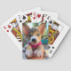 Ces cartes à jouer ont un chiot sur elles.
