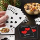 Personnalisable Red Hearts sur cartes à jouer Noir. Modifiez le texte, ajoutez plus de coeurs, déplacez-les et le retour rouge peut être modifié par le client. Par https://www.zazzle.com/store/celestesheffey