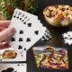 Ces cartes à jouer ont un dinosaure représenté sur elles.