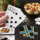 Poker jouant aux cartes avec design avec un drapeau du comté historique de Caithness, en Ecosse, Grande-Bretagne; drapeau noir avec croix nordique bleue et jaune et une illustration d'un navire avec un corbeau sur sa voile dans le treuil supérieur