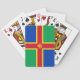 Poker jouant aux cartes avec design avec un drapeau du comté historique de Lincolnshire, en Angleterre, Grande-Bretagne; drapeau vert et bleu avec croix rouge et jaune et une Fleur-de-Lis dans le centre
