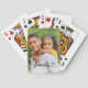 Les cartes de jeu personnalisées modernes et élégantes disposent d'une photo préférée avec un design minimaliste de typographie "familiale" qui inclut des détails élégants de floraison et de coeur. La couleur du texte noir peut être customisée.