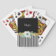 Un jeu de cartes à rayures noir et blanc chic et moderne avec d'élégantes fleurs vert menthe et blanc sur une bande d'or. Personnalisez ce design floral élégant en ajoutant votre nom. Impression plane, NON métallique.