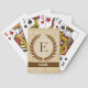 Une délicate couronne de laurier est posée sur un arrière - plan vintage de partitions de style romain classique. Ce design présente le monogramme "E" dans une tonalité de sienne riche. Personnalisez avec n'importe quel nom pour une Fête des pères vraiment customisée ou un cadeau de mariage. Les cartes à jouer monogrammes font des cadeaux réfléchis pour papa, grand-père, frère, oncle, mari, marié, meilleur homme ou groomsmen. Conseil de conception : Pour la police affichée ici, utilisez tous les casquettes pour le nom.