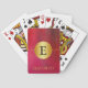 Il s'agit d'une surface noire avec l'insigne de cercle doré monogramme initial peut être édité, qui donnent une apparence unique. Vous pouvez ajouter votre photo préférée. C'est une idée cadeau parfaite. Personnalisez avec votre nom et d'autres textes. Faites votre propre jeu de cartes pour vos amis ou votre famille et faites-le personnel. Conçu pour les hommes ou les femmes qui aiment les designs élégants fantaisie.