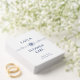 La fête nuptiale personnalise les cartes à jouer avec le thème nautique pour personnaliser pour chacun des membres de votre mariage. Le texte personnalisé inclut votre nom d'invité, votre rôle ou relation et, le nom de la mariée et du marié et leur date de mariage. Si vous voulez vous aventurer dans l'outil de conception, vous pouvez également changer la couleur de l'arrière - plan, le texte, la corde à voile et l'illustration de la barre. Design simple et élégant pour un mariage marin, côtier ou marin.