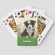 Cartes à jouer avec un border collie. Un beau chiot, avec une robe noire et blanche, est assis dans l'herbe haute parmi les fleurs sauvages dans ce design. Ajoutez son nom en texte couleur crème en bas. L'image du chien est un modèle et peut être remplacée par une photo de votre propre chien.