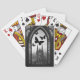 Des papillons noirs voltigent hors d'une fenêtre en arc, avec une cathédrale gothique en arrière-plan sur ce beau jeu de cartes noir et blanc. Idéal pour remplir un bas !