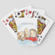 Ce design de carte à jouer est l'illustration d'un mignon chiot et de ses parents, d'un homme chauve et d'une femme brune. Vous pouvez customiser le texte.