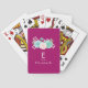 Jouer des cartes avec un nom personnalisé et une initiale monogramme sur un arrière - plan magenta. Bouquet de fleurs pastel aquarelle au sommet. Les fleurs, les feuilles et les sprigs sont rose pastel et vert. Créé avec de la peinture aquarelle et numérisé. Frais et estival.