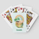 Jouer aux cartes avec une adorable illustration montrant un pot vert et or souriant avec un arc-en-ciel mignon, un nuage heureux et un trèfle vert. Parfait pour la Saint-Patty's Day.