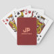 Moderne Élégant Texte en relief Monogramme Initial Nom Modèle Rouge Brun Cuir aspect Cartes à jouer Classiques.
