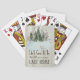 La vie est géniale à la citation d'été amusante du lac. Bois blanc comme arrière - plan avec plan d'eau d'arbres, lac et bateau. Monogramme avec votre nom de famille. Parfait pour jouer au poker, au poisson ou à d'autres jeux de cartes.