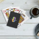 Véritables cartes Bicycle imprimées au dos de ce que vous voulez. Moi je m’en suis fait des cartes de visites. Excellente, très beau rendu des couleurs