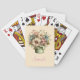 Playing cards with a cute image. Blue. pink and cream colored flowers with green leaves. Set inside a green flower pot with a green plaid cloth hanging over the side.