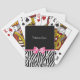 Un motif d'impression zèbre noir et blanc tendance jouant aux cartes avec un joli ruban rose enveloppé comme un cadeau. Personnalisez en ajoutant votre nom. Un cadeau parfait pour une fille ado !