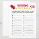 ⭐️ Qu'est-ce que c'est : Boxing A To Z Race Game est un jeu de fête. Écrivez un mot lié à la boxe qui commence par chaque lettre de l'alphabet. Première Personne Finit Gagne !