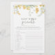 Offrez à vos invités une expérience unique de baby shower avec notre élégant jeu de désordre de mots sur le thème des florales aquarelles jaunes ! Plein de charme, ce jeu présente de délicieuses images aquarelles de fleurs jaunes et de feuillage vert. Il ne s'agit pas seulement de s'amuser, il s'agit de créer des souvenirs. Et ne vous inquiétez pas si vous êtes coincé - les réponses sont juste au dos !