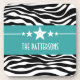 Dessous de verre moderne et tendance Sassy Star Zebra Set avec un arrière - plan design en zèbre noir et blanc et une bordure turquoise audacieuse ornée d'un motif étoilé amusant. Ce design girly peut être customisé avec le texte personnalisé de votre choix. Cliquez sur "Customiser" pour trouver d'autres options de personnalisation.
