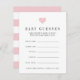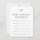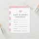 Laissez les invités du baby shower faire leurs meilleures devis à la date et à l'heure de naissance de la petite fille, le poids et la longueur! Placez une cheminée à l'entrée de l'événement, passez-les ou laissez-en une à chaque endroit. Fait une tenue de conservation amusante pour la future maman aussi, lorsqu'il est compilé dans une jolie boîte ou un classeur. Le design est doté d'un coeur rose vif au sommet avec des lettres noires modernes et un motif rayé blanc et roux au verso.