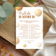 Cette conception a été inspirée par des ballons dorés doux flottant autour de la fête, ajoutant une touche chaleureuse et élégante à un jeu classique de baby shower. La mise en page épurée et les tons neutres le rendent moderne et élégant tandis que les invités s'amusent à deviner les préférences de la future maman.