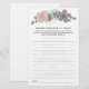 Un jeu de fête amusant pour votre fête de mariage avec ce design artistique à fleurs bleues poussiéreuses et roses saumon. Vos invités écriront leur souvenir préféré avec la future mariée, qui le lira ensuite à haute voix et tout le monde devinera à qui appartient ce souvenir. Votre nom et la date sont subtilement teintés en arrière-plan, surmontés de lignes sur lesquelles vos invités peuvent écrire leurs anecdotes. Personnalisez facilement le texte.