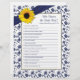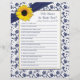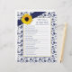 Vous pouvez personnaliser le nom sur ce tournesol jaune, bleu marine et blanc floral et ruban douche nuptiale personnalisée "qui connaît le mieux la mariée" jeu. Vous pouvez modifier le texte à l'aide des options de personnalisation. Les couleurs de ce jeu de douche nuptiale sont jaune, bleu marine et blanc... parfait pour un wedding shower de printemps, d'été, d'automne ou d'automne.