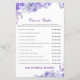 Editable au-dessus ou sous la Fête des mariées Jeu Imprimé Élégant violet, Fleurs violettes, Fête des mariées violet, Mariage violet
