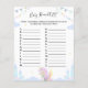 Jeu de feuilles "Baby Item ABC" pour baby shower Décoré d'une adorable licorne avec ailes, une guirlande et un château.