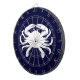 Forme de crabe blanc contre un bleu marine foncé. L'espèce est un crabe bleu.