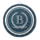 Conception de monogramme avec décoration de couronne de laurier en forme arrondie rayée sur arrière - plan bleu