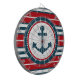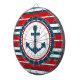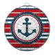 Design nautique avec décoration d'ancre en forme ronde sur arrière - plan rayé rouge, bleu et blanc