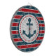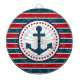 Design nautique avec décoration d'ancre en forme ronde avec étoiles sur rouge, bleu et blanc rayé arrière - plan