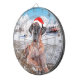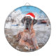 Très Beau Chien Danse Assis Dans La Neige Noël Rouge Chapeau Du Père Noël