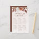 Faites rire et concourir votre cortège de mariage avec ce jeu amusant et personnalisable "Qu'est-ce que vous avez dans votre sac ?". Avec un beau design floral aux couleurs automnales neutres, ce jeu est parfait pour un mariage automnal ou de style bohème. Personnalisez le jeu avec vos propres touches personnelles pour créer une expérience unique et mémorable pour tous. Ce jeu sera certainement un succès à tout mariage, douche de mariée ou enterrement de vie de jeune fille.