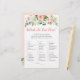 Ces élégantes cartes Qu'est-ce que vous avez dans votre sac sont un excellent moyen de lancer l'amusement à votre douche de mariage et garanties d'être un énorme succès ! Il suffit de les faire passer autour pendant la douche de mariage où les invités s'amuseront à fouiller dans leurs sacs et à cocher les articles qu'ils ont sur la liste. La personne avec le plus de points gagne ! Ce design présente de belles fleurs aquarelles rose blush et crème.