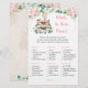 Ces élégantes cartes Qu'est-ce qu'il y a dans votre sac sont un excellent moyen de lancer l'amusement à votre douche de mariage et garanties d'être un énorme succès ! Il suffit de les faire passer autour de la douche de mariage où les invités s'amuseront à fouiller dans leurs sacs et à cocher les articles qu'ils ont sur la liste. La personne avec le plus de points gagne ! Le design présente des valises et un globe avec des fleurs aquarelles roses et des confettis en faux or.