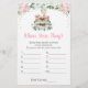 Ces cartes de jeu Où étaient-ils adorables sont une activité amusante pour une douche de mariage. Il suffit de les faire circuler pendant la douche où les invités s'amuseront à deviner où les mariés allaient être sur chaque photo. Le design présente des valises et un globe avec des fleurs aquarelles roses et des confettis en feuille d'or faux.