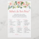Ces cartes élégantes 'Qu'est-ce que vous avez dans votre sac à main' sont un excellent moyen de lancer l'animation à votre enterrement de vie de jeune fille et sont garanties d'être un énorme succès ! Il suffit de les faire passer autour pendant la fête où les invités s'amuseront à fouiller dans leurs sacs et à cocher les objets qu'ils ont sur la liste. La personne avec le plus de points gagne ! Ce design présente de belles fleurs aquarelles rose tendre et crème.