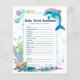 Doté d'un dauphin ludique et d'une tortue amicale, cette carte d'activités ajoute au thème océanique de votre événement spécial. Avec différents mots liés au bébé brouillés, vos invités auront une explosion en essayant de les démêler et d'être le premier à finir. Réponse Clé 1. bouteille 2. maternité 3. alimentation 4. formule 5. couche 6. marchette pour bébé 7. bottes 8. carrosserie 9. lait 10. bain pour bébé 11. berceuse 12. couche 13. berceau