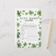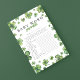 Créez de l'amusement lors d'une baby shower avec ce jeu de mots mêlés sur le thème du 'trèfle' ! Les caractéristiques de conception incluent un assortiment de trèfles aquarelles de différentes nuances de vert. Les réponses sont disponibles au verso. Pour une personnalisation plus avancée de ce design, sélectionnez simplement le lien 'Personnaliser davantage' après la personnalisation !