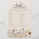 Jeu de mots mêlés pour mariage. - Ce jeu de mariage élégant et raffiné présente de magnifiques fleurs sauvages peintes à la main à l'aquarelle, disposées comme un cadre charmant et un script calligraphié élégant. Le dos comprend un motif coordonné charmant. (Corrigé - lune de miel, réception, marié, bouquet, première danse, invitation, mari, mariage, garçons d'honneur, demoiselle d'honneur, amour, shower de mariage, save the date, fiancée, épouse, mariage, embrasser la mariée, future mariée, se marier, félicité conjugale)