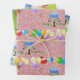 Ce jeu de papier d'emballage d'anniversaire comprend trois feuilles, chacune avec une couleur arrière - plan différente - rose, vert et crème - pour une variété vibrante et festive. Le design de chaque feuille montre : Une arche charmante, ornée de ballons colorés flottant au-dessus, ajoutant une touche joyeuse. En dessous de l'arche se trouve un gâteau d'anniversaire à trois niveaux, joliment décoré pour rehausser l'atmosphère festive. Sous le gâteau, les mots "Joyeux Anniversaire" sont élégamment écrits, complétant le design joyeux. Parfait pour envelopper les cadeaux dans un style amusant et ludique, cet ensemble de papier d'emballage ajoute une touche de festivité à toute célébration d'anniversaire ! 🎉