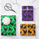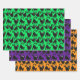 Halloween chat noir ensemble de papier d'emballage de 3 feuilles, avec un motif chat branché sur un arrière - plan vert, violet et orange. Pour les produits correspondants, veuillez consulter la collection Halloween Chat Noir dans mon magasin.