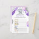 Ce jeu de baby shower amusant présente un bébé éléphant violet et gris avec des ballons et des confettis. Vos invités peuvent résoudre les comptines en décodant les émoticônes. Clé des émoticônes : 1. Hey Diddle Diddle 2. Twinkle Twinkle Little Star 3. Itsy Bitsy Spider 4. Cinq petits singes sautent sur le lit 5. Hickory Dickory Dock 6. Le vieux MacDonald avait une ferme 7. Hush Little Baby 8. Rub-a-Dub-Dub 9. Little Miss Muffet 10. Un, deux, boucle ma chaussure 11. Jack et Jill 12. Ramez, ramez, ramez votre bateau 13. Il était une vieille femme 14. Star Light Star Bright 15. Baa, Baa, mouton noir