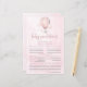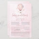 C'est une activité de prédiction du baby shower à ballon à air chaud rose. Il permet de deviner le sexe, la date de naissance, l'heure, le poids, la couleur des cheveux, la couleur des yeux, la longueur, etc. Il y a aussi une ligne pour donner des conseils.