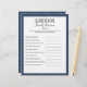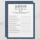 Profitez de jouer à ce jeu de questions amusant et trivia lors de votre prochaine réunion de famille. Répondez ou devinez le nom du ou des membres de la famille pour les questions qui peuvent être customisées. Arrière - plan bleu damassé.