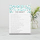 Jeu de fête de mariage: Dans quelle mesure connaissez-vous la mariée? en turquoise et bleu. Défiez vos invités à répondre à des questions sur la future mariée.