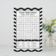 Ce jeu de recherche de mots de douche de la fête nuptiale va avec n'importe quelle couleur ou thème comme il est classique noir et blanc. Le design noir et blanc présente un tirage en zigzag de chevron dans l'arrière - plan pour le jeu de recherche de mots. Le jeu a tous les mots mariages pour le rendre plus amusant et vous pouvez mettre le nom de la mariée au sommet. Copyright henishouseo