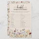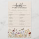 Jeu de course de mots nuptiale. - Ce jeu de douche nuptiale élégant et élégant présente de magnifiques fleurs sauvages d'aquarelle peints à la main, disposés comme un cadre charmant et élégant script de calligraphie. Le dos comprend un joli motif de coordination. (Réponse Key - lune de miel, réception, mariée, bouquet, première danse, invitation, mari, mariage, femme de ménage, femme de ménage, amour, douche nuptiale, sauver la date, fiancée, femme, mariage, baiser la mariée, épouse à être, cravate le noeud, bonheur mariage)
